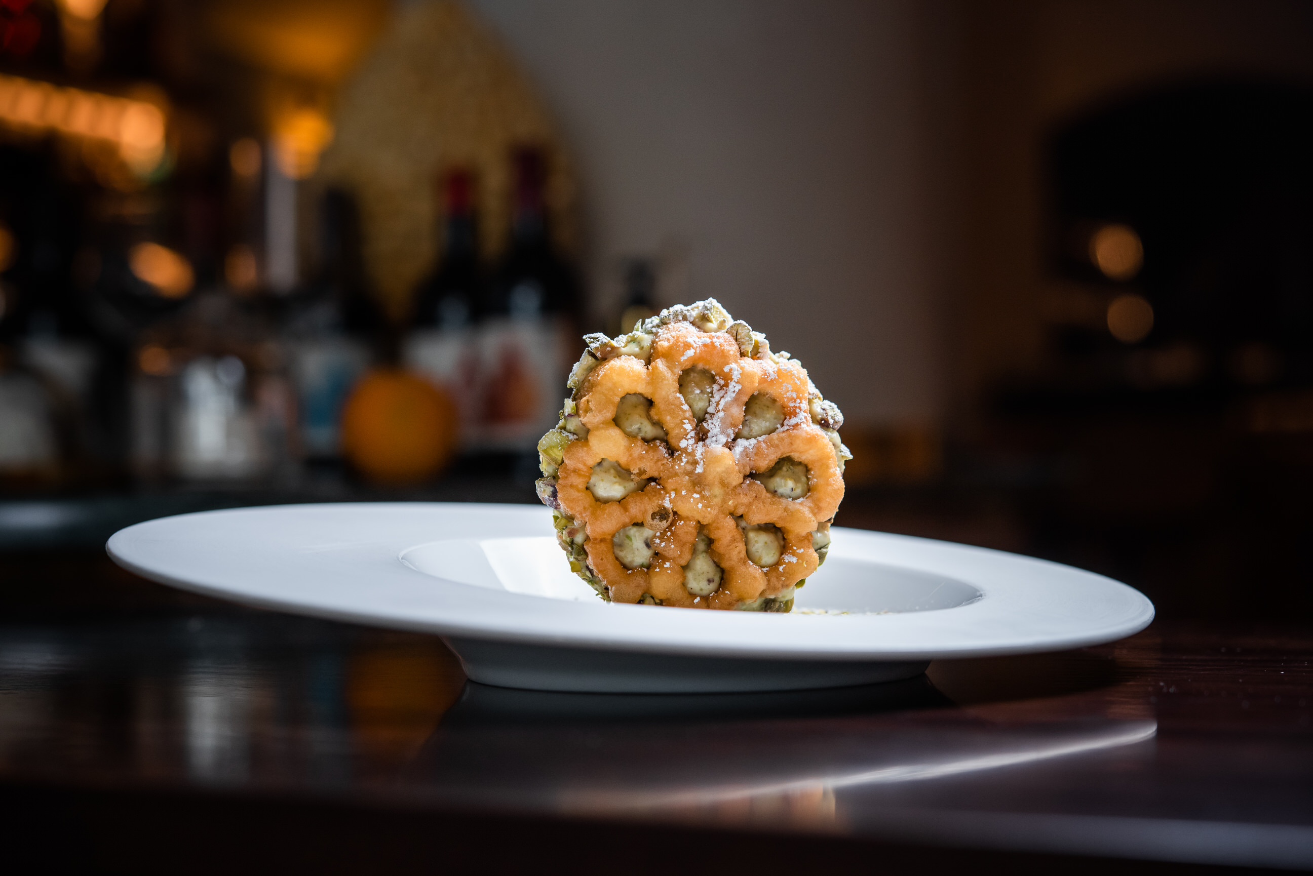 Cuando Gabriele viene con un surtido de postres la resistencia ya no existe. Para terminar nuestra degustación nos hemos decantado por un postre, obviamente, siciliano: el bacio de Sicilia, con pistacho de Bronte DOP y chocolate blanco, una combinación más que consagrada.