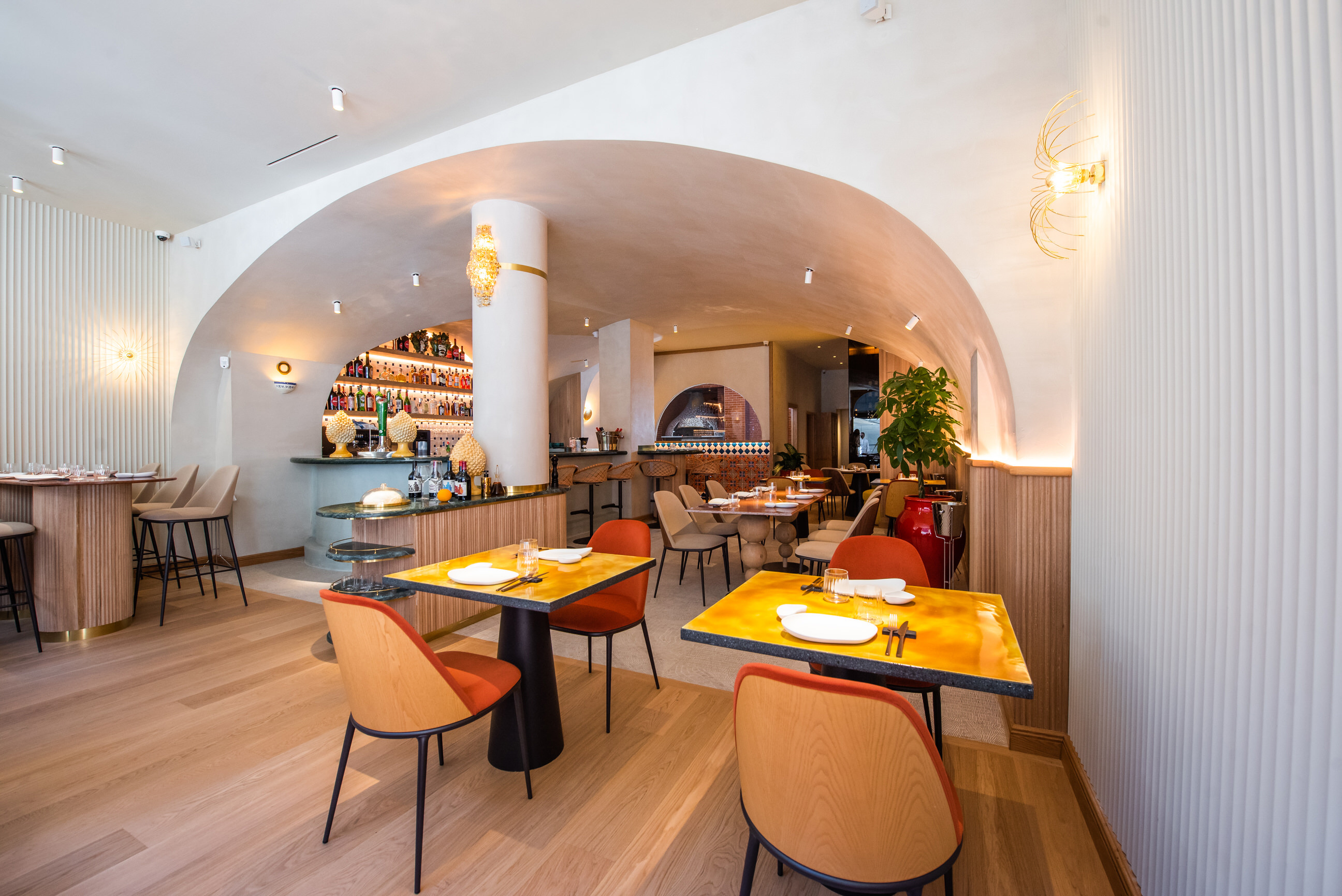 Un local decorado con muy buen gusto, moderno, sin dejar de lado la sobriedad, en el que en un mismo espacio te encuentras cómodo en barra, en mesa o en sofá, y siempre con el fondo del ventanal al horno de piedra que supone el corazón del restaurante. Si a esto se une la maravillosa conversación con Claudia sobre los platos de la carta y su amor por Sicilia, aunque ella naciera en Cerdeña, y con Gabrielle, que explica con precisión, el espíritu del local. Por eso desde el principio la sensación es perfecta.