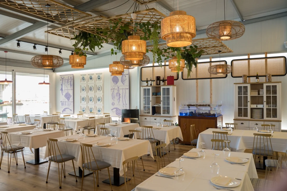Burela, reino del bonito del norte, llama el sexto día a ALonxa, en el edificio de la nueva lonja. Mesas con vistas al puerto donde el atún llega fresco, cocinado en mosaico o tataki. Coquinas al ajillo chisporrotean junto a erizos de San Cibrao.