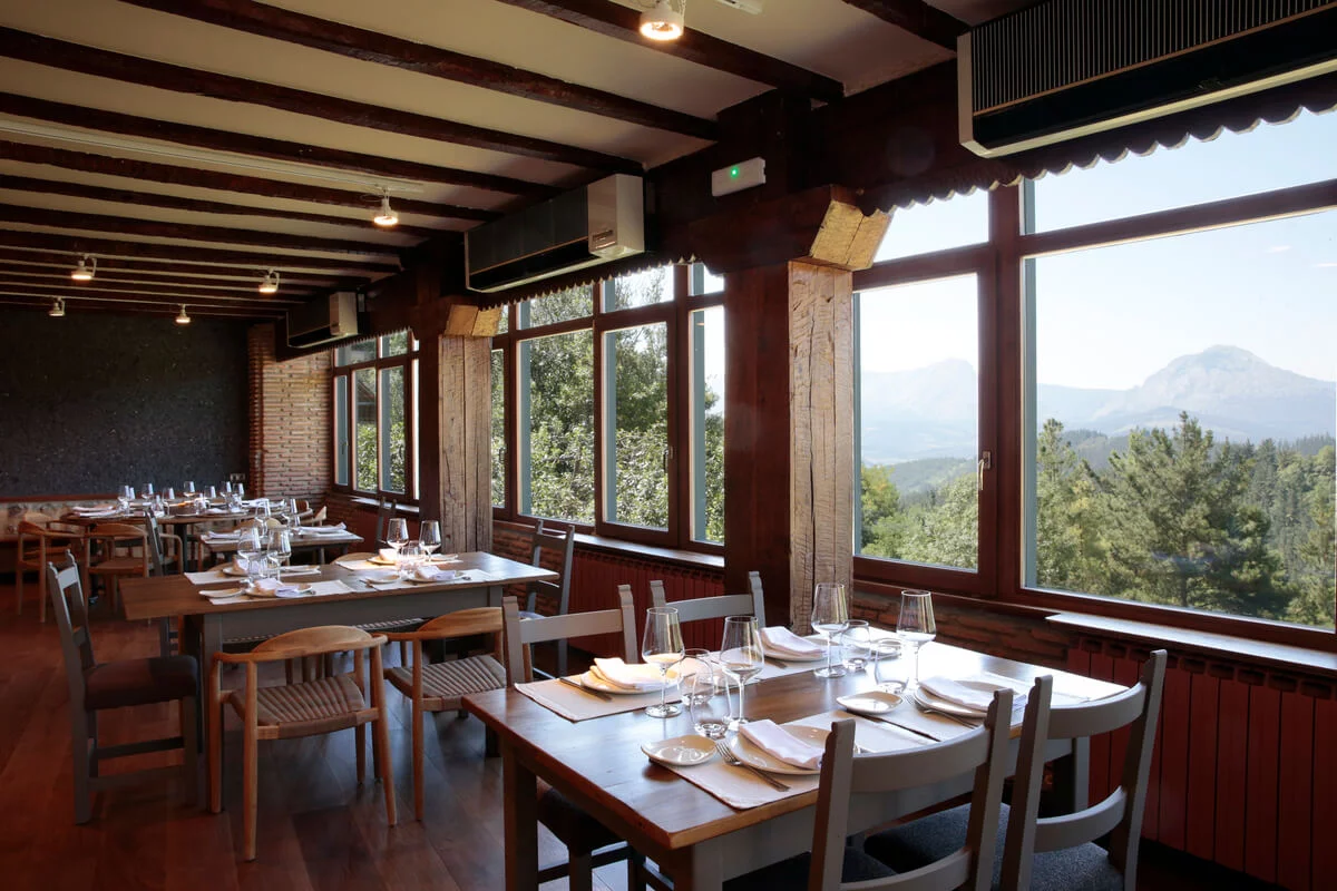 Muros de piedra, pilars de madera y ese aspecto de caserío moderno que gusta a casi todo el mundo. Garai Jatetxea propone platos de siempre, ejecutados con respeto por la materia prima: carnes rojas a la brasa, pescados frescos, revueltos de hongos, foie, pimientos de Gernika, ensaladas con productos del caserío. Los postres caseros —tarta de queso, flan, cuajada— completan una experiencia que se acompaña de una bodega seleccionada.