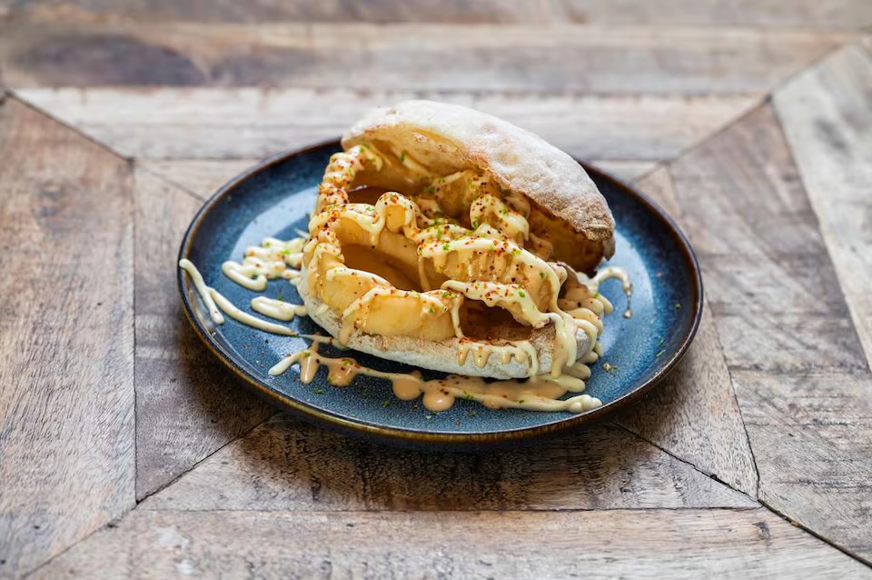Comer este bocata de calamares con las manos es obligatorio. La textura crujiente de los anillos de calamar, la cremosidad de la mayonesa Kewpie y la acidez del limón rallado exigen ser experimentadas directamente. No hay cubierto que pueda replicar la satisfacción de sentir el pan húmedo entre los dedos mientras los calamares estallan en tu boca con cada mordida.