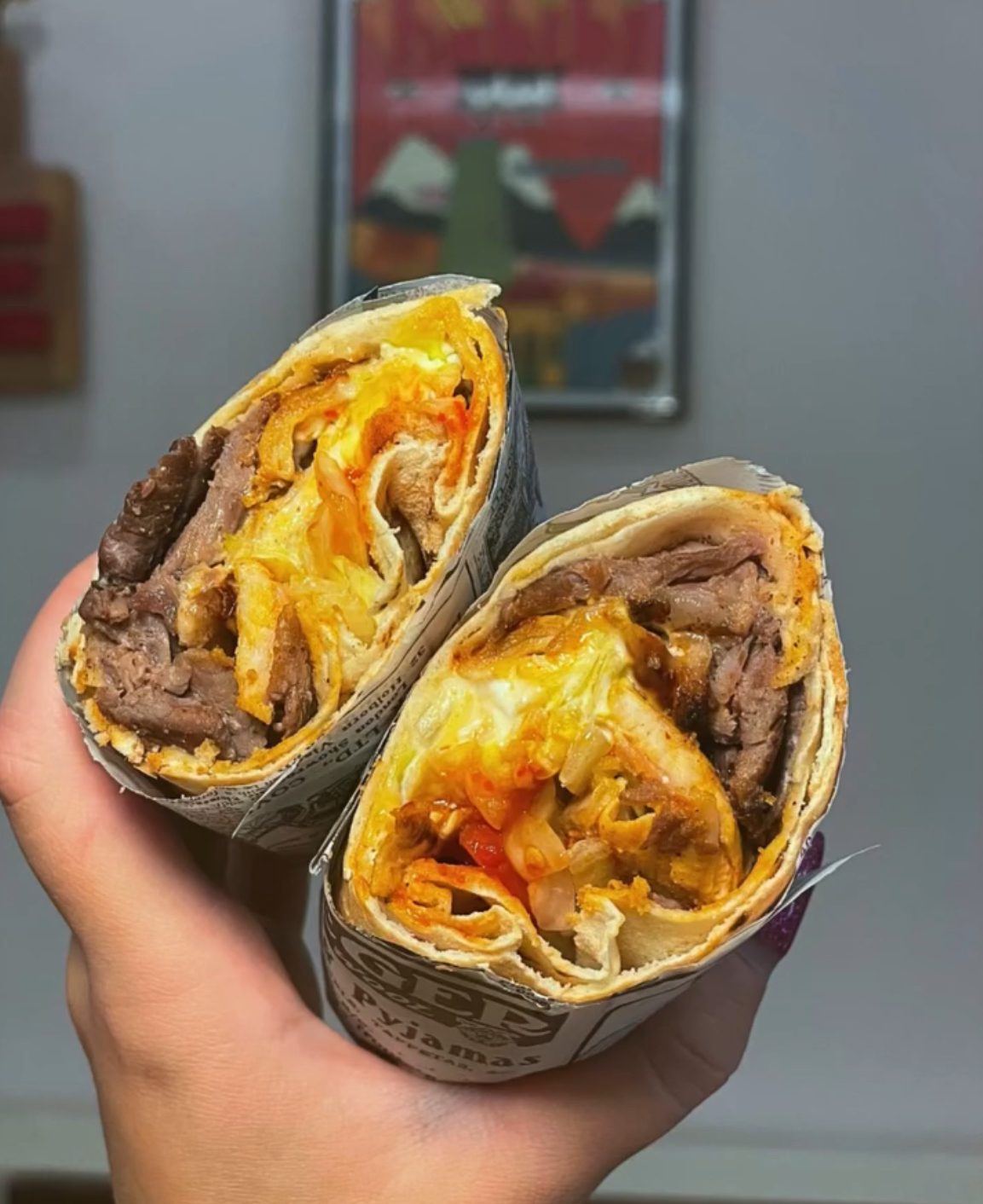 El durum se come absolutamente con las manos. Se enrolla apretadamente para que ningún ingrediente se caiga, y se sostiene con firmeza mientras se da el primer bocado. La masa de pan árabe cede justo lo suficiente, los vegetales frescos añaden crocancia, la carne caliente y especia explota en tu boca, y la salsa de yogur une todo en perfecta armonía. Es comida de carretera refinada, streetfood elevada a categoría.