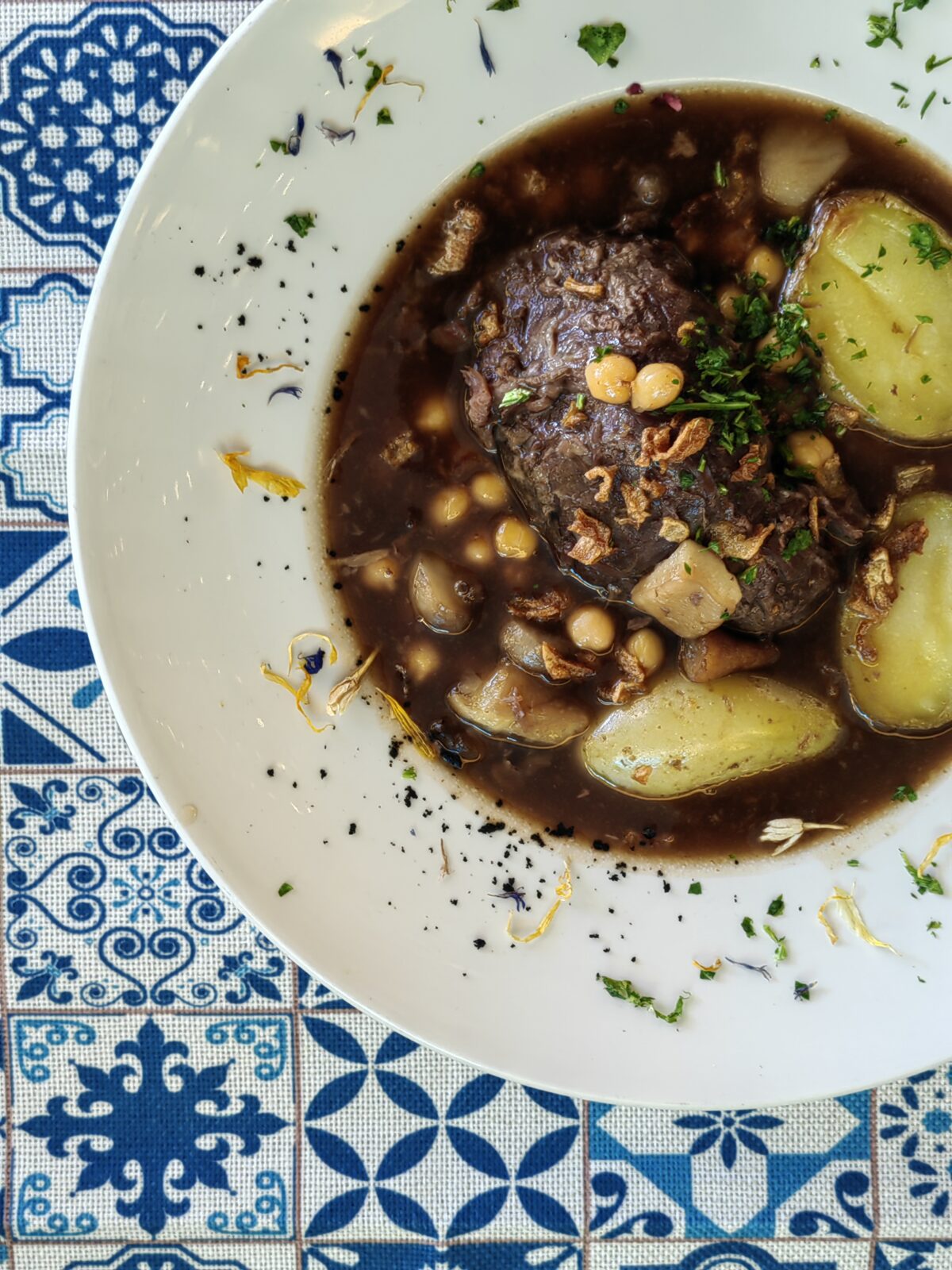 En La Pataleta, Mulero quiere desarrollar lo que él define como “una gastronomía viajera con acento andaluz”. Nada de artificios excesivos ni de platos encerrados en su propio ego. Su propuesta es una cocina informal pero cuidada, que respeta la tradición e introduce guiños de sus viajes. No quiere competir con el pescaíto frito ni con el espeto: quiere complementar la oferta gastronómica local con arroces melosos, magrets de pato, carrilladas con setas o ceviches andaluces.