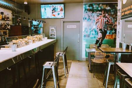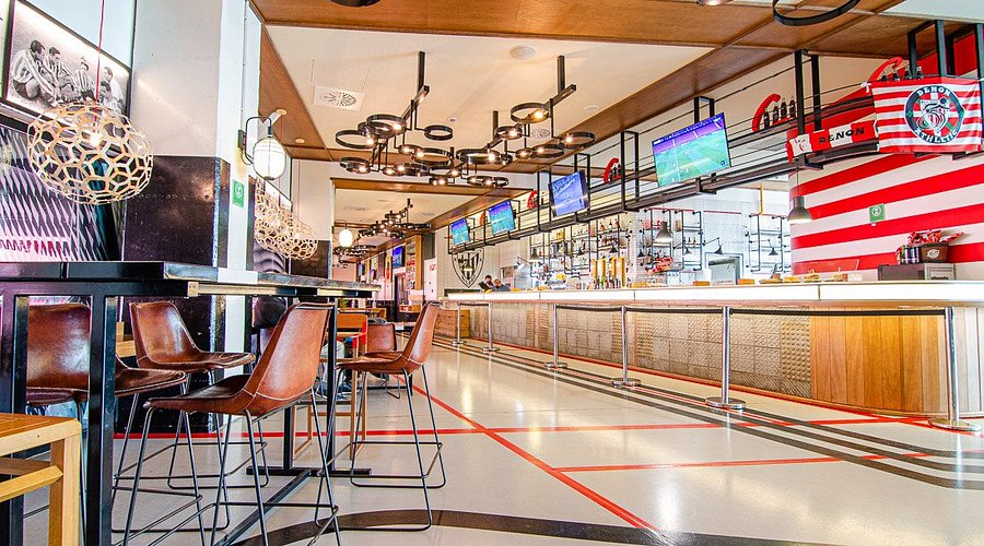 Frente a San Mamés ya se entiende todo con el nombre: aquí se viene a rezar al fútbol con caña en mano y un plato de pintxos delante. Desde primera hora hay tortillas, raciones y platos sencillos pero bien resueltos, con ese punto casero que pide el cuerpo antes o después del partido. Ambiente muy athleticzale, lleno de bufandas y camisetas los días de partido. Pintxos de tortilla, raciones “de campeonato” y cocina sin complicaciones para llenar el estómago rápido. No faltan las hamburguesas y los sándwich, que la vida es muy global. Para impresionar a un realista, basta con sentarlo en la terraza con vistas al estadio: que sienta el cosquilleo de estar en la casa del eterno rival mientras suena el “Athleeeeeetic, eup!” de fondo.