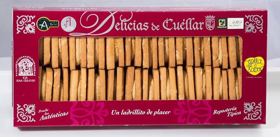 Aquí hemos venido a por un tesoro muy concreto. En Cuéllar, el dulce tiene denominación de origen oficiosa. Hablamos de la Pastelería Delicias. Este obrador familiar consiguió algo que muy pocos logran: inventar un dulce que se convierte en el símbolo de todo un pueblo. Su creación estrella son las «Delicias de Cuéllar». Visualízalo: dos piezas de hojaldre artesano, pero de ese que cruje de verdad, rellenas de una crema suave y misteriosa (receta secreta, por supuesto), y cubiertas con una generosa capa de azúcar glas y piñones de la zona.