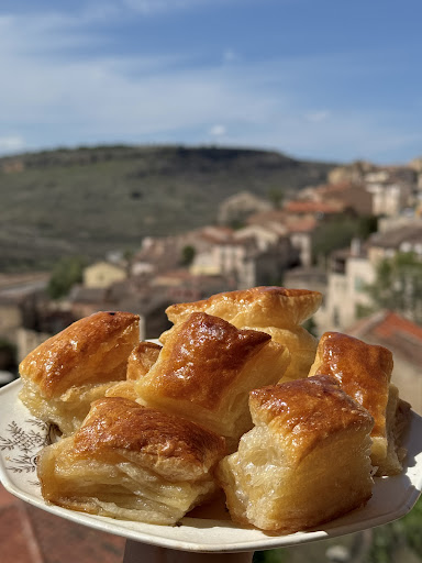 Es el sitio típico donde entra el abuelo del pueblo, el turista madrileño y el senderista. En Navidad, su mostrador se llena de empiñonados y mantecados. Pero si me aceptas un consejo, prueba sus soplillos y cualquier cosa que lleve crema pastelera. Tienen esa mano «de antes» para las cremas, densas, amarillas y con sabor a huevo y limón, nada de polvos industriales. Comprarse un dulce en La Peña y comérselo sentado en la plaza porticada, viendo la vida pasar, es el verdadero lujo castellano.