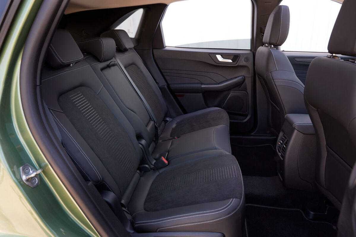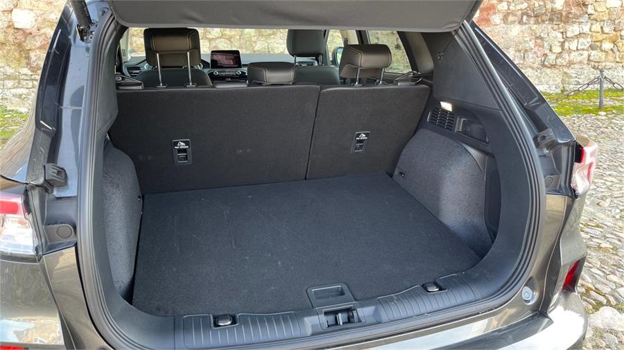 Además lo interiores tienen unos niveles muy aceptables para su precio. Una decoración cuidada, fina y elegante que distingue a este Kuga de última generación. Los asientos recogen el cuerpo a la perfección y tienen buen mullido, las plazas traseras resultan igualmente amplias y confortables, especialmente las laterales. No obstante, lo mejor de esta zona trasera del Kuga FHEV es que incluye una banqueta deslizable longitudinalmente con gran recorrido, que puede darle hasta 67 litros de capacidad extra a un maletero mermado.