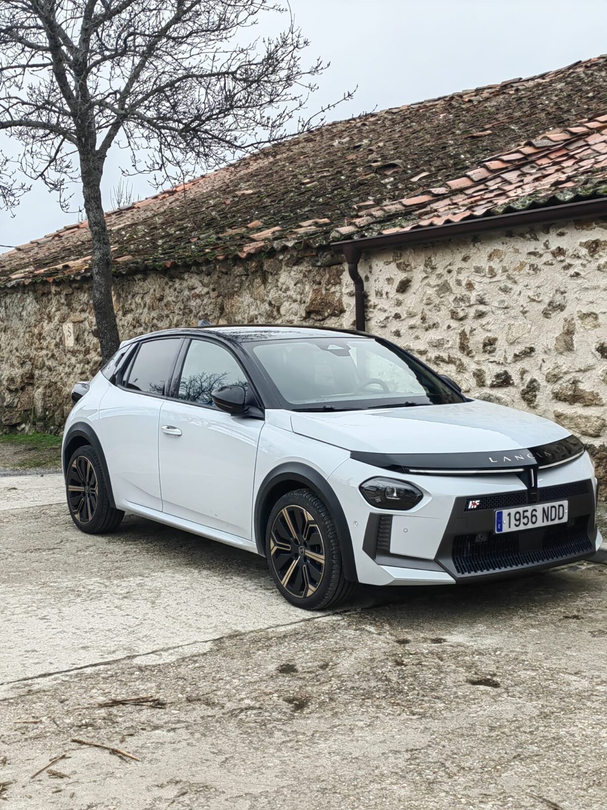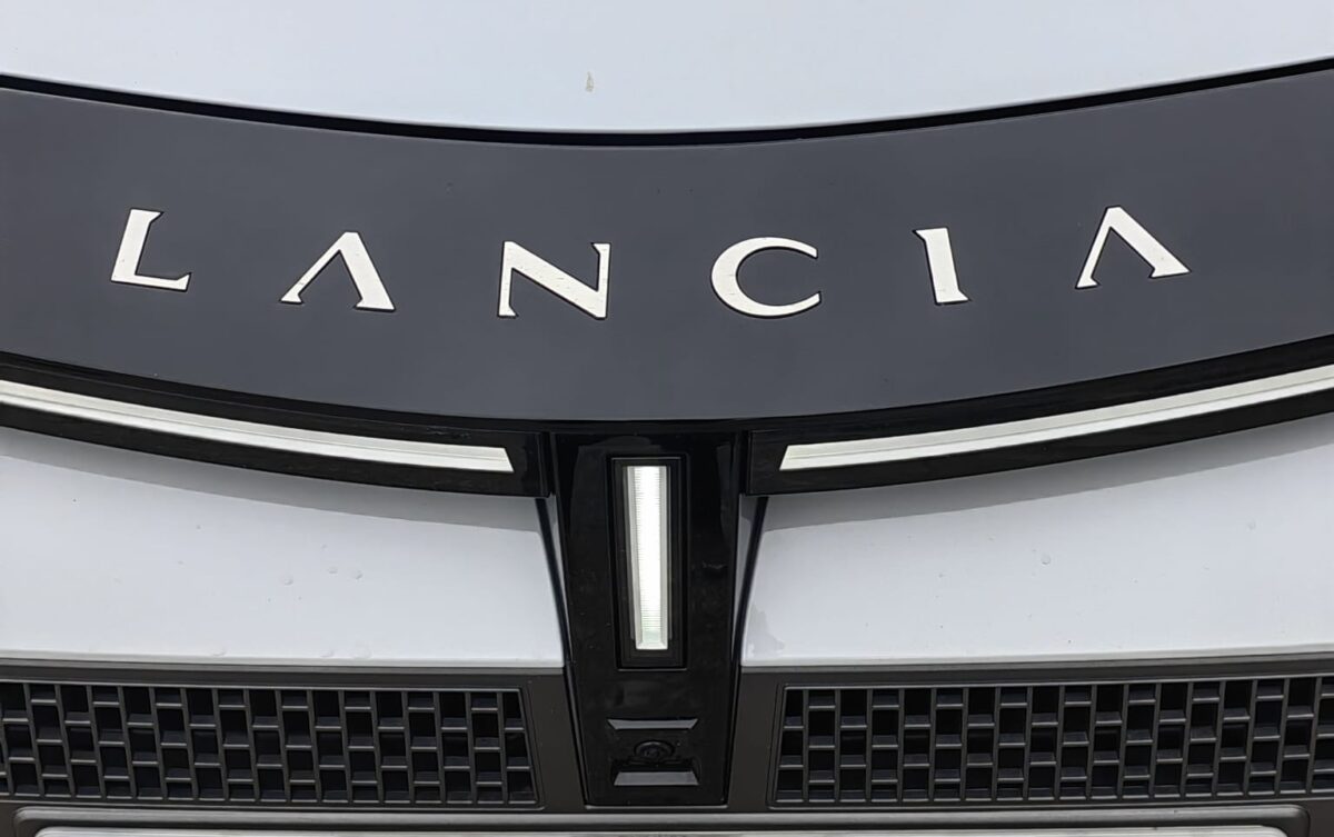 El frontal está dominado por el “cáliz” de Lancia reinterpretado en clave moderna: una especie de escudo luminoso que se prolonga hacia los faros, con tecnología LED y una firma lumínica que recorre la parte superior de la parrilla por debajo del nombre de la marca. Las ópticas son finas y horizontales, y se combinan con un paragolpes trabajado y embellecedores laterales que dan anchura visual al coche, algo que se percibe sobre todo cuando lo ves desde cerca aparcado en la calle.