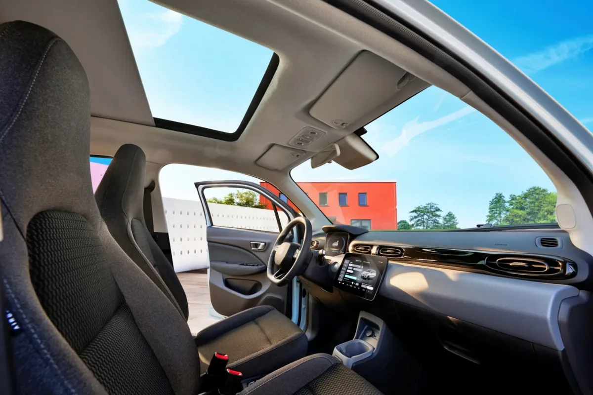 Y luego está el equipamiento. Leapmotor ha insistido bastante en su filosofía de “todo de serie” en algunos mercados europeos, y eso vuelve a encajar con la personalidad del coche. No se trata solo de tener cosas; se trata de evitar la antigua trampa del coche asequible que, cuando empiezas a añadir lo imprescindible, deja de ser asequible. En el T03 aparecen elementos que hace unos años habrían parecido casi extravagantes en un urbano de acceso: techo panorámico, cámara de visión trasera, climatizador, un paquete abundante de asistentes a la conducción y funciones de conectividad avanzadas,