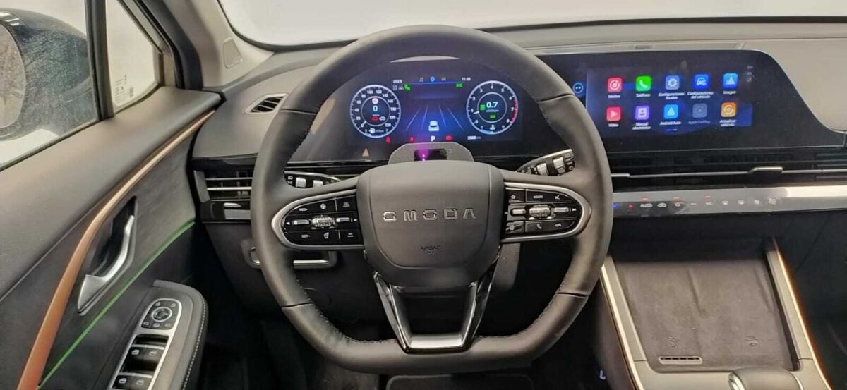 La conectividad, por su parte, no llega como peaje, sino como herramienta. Esa es una de las mejores noticias. El chip Qualcomm 8155 permite una respuesta rápida del sistema, algo que a estas alturas debería ser obligatorio, pero no siempre sucede. Apple CarPlay y Android Auto, el control multimodal desde pantalla, volante, consola y voz, y una interfaz revisada apuntan a una idea muy clara: la tecnología tiene que estar, pero no puede convertirse en una prueba de paciencia. Incluso el asistente “Hola, OMODA” tiene sentido si se entiende como parte de una experiencia de uso más fluida y no como simple demostración de modernidad. Poder gestionar llamadas, ventanillas, climatización o techo solar por voz sin convertir el coche en un laboratorio es, sencillamente, lo que hoy se espera de un producto bien resuelto.