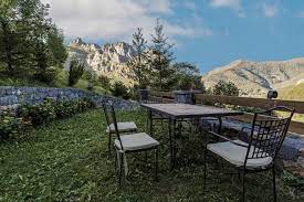 Piedras irregulares, aleros de madera y balcones adornados con flores dan la bienvenida a los viajeros que llegan por carreteras serpenteantes entre hayedos. Aquí, la montaña impone su tempo, y el establecimiento lo asume como filosofía: comida lenta, silencio generoso y trato casi familiar. En invierno se refugia uno junto al fuego; en verano, se abre la terraza con vistas a los prados.