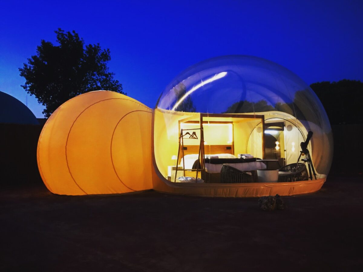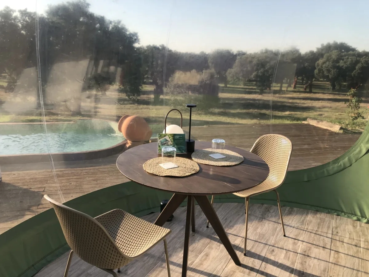 En la comarca del Tiétar, donde la llanura se mezcla con las primeras estribaciones de Gredos y las dehesas de encinas dibujan un paisaje suave, El Toril GlampingExperience ha añadido a su oferta unas burbujas premium con piscina privada. Entre ellas, la Sky Bubble se ha convertido en uno de esos lugares que circulan de boca en boca entre quienes buscan experiencias románticas en plena naturaleza: una cúpula transparente con zona de estar, cama ampliada y vistas al cielo, todo ello rodeado por el verde de una finca cuidadosamente integrada en el entorno.
