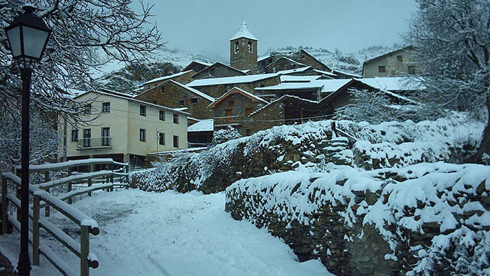 Viliella es uno de esos nombres que no suelen aparecer en letras grandes en los folletos, y justamente por eso encaja tan bien en una ruta de pueblos nevados. Situado a más de 1.500 metros de altitud, entre Lles y otras pequeñas aldeas, se alza en lo alto de un tossal que le regala una panorámica amplia de las montañas. Cuando nieva, Viliella parece un refugio colgado en el paisaje, con sus casas de piedra agrupadas y las curvas de la carretera borrándose bajo el blanco.