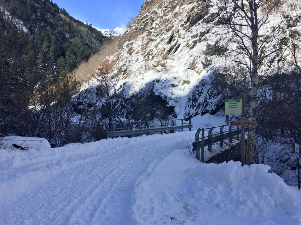 El valle que rodea Areu es un paraíso para disfrutar de la nieve de forma tranquila: caminatas por pistas pisadas, rutas con raquetas hacia bosques cerrados o paseos cortos hasta pequeñas ermitas y miradores. Basta alejarse unos metros del núcleo para que el silencio sea absoluto, roto solo por algún arroyo o el crujido de los pasos sobre la nieve.