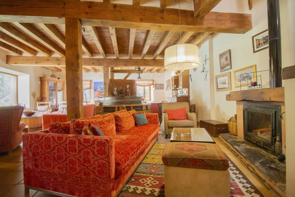 En el término municipal de Ortigosa del Monte, muy cerca de Segovia capital y a los pies de la sierra de Guadarrama, La Casa del Molino ofrece otra manera de habitar un viejo artificio hidráulico reconvertido. Rehabilitado íntegramente en 2015, este antiguo molino se levanta en una finca plenamente cerrada, lo que refuerza la sensación de refugio privado. El edificio, de dos plantas, conserva la estructura robusta de piedra y la relación directa con el río, al que se accede literalmente por una puerta del jardín. Son seis habitaciones repartidas en dos niveles, pensadas para grupos y familias que quieren compartir tiempo sin renunciar a espacios propios.