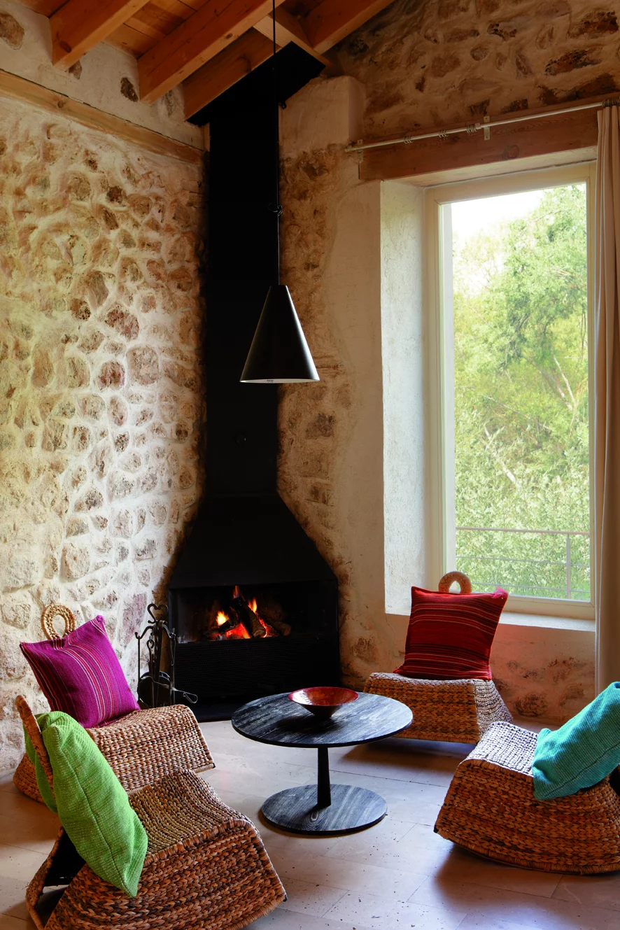 El edificio mantiene esa planta sólida de los molinos de río, con muros gruesos que aíslan del calor en verano y de las heladas en invierno. La rehabilitación suele respetar las grandes estancias, transformándolas en salones con chimenea y espacios comunes donde la piedra y la madera marcan el tono.
