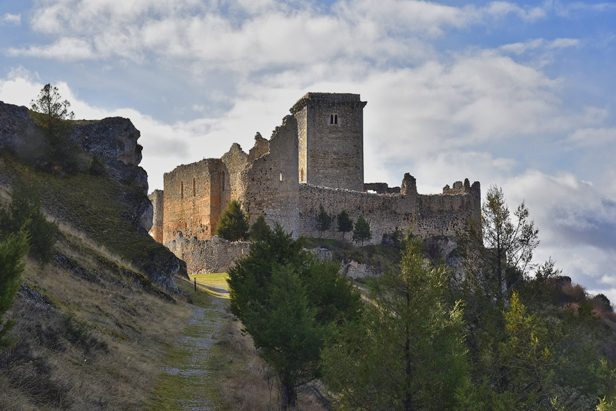 La siguiente parada tiene algo de umbral. El castillo de Ucero aparece sobre un promontorio rocoso, en la orilla del río Ucero, dominando los valles de los ríos Lobos y Chico, con el Cañón del Río Lobos y excasos kilómetros. Es una ruina, sí, pero de esas ruinas que todavía mandan: basta verlo recortado para entender por qué alguien eligió esa altura.