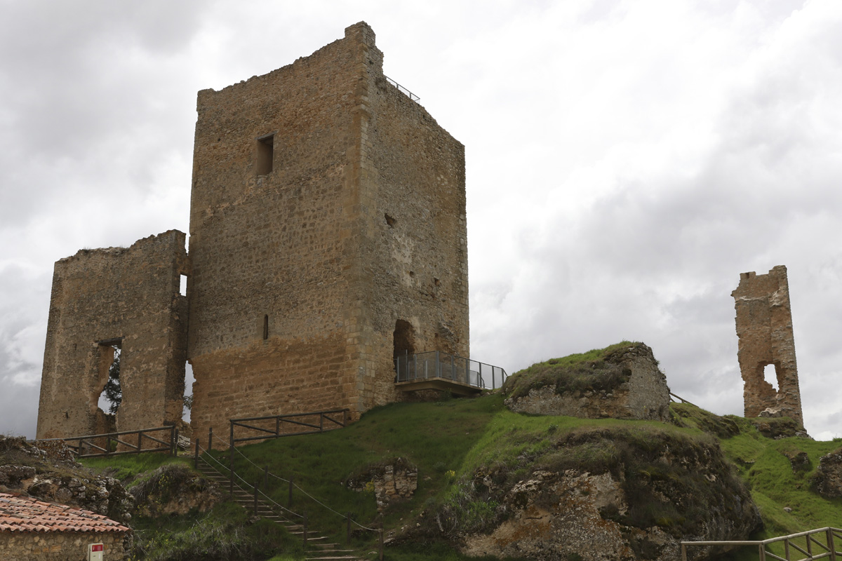 De Ucero a Calatañazor el paisaje se vuelve más medieval incluso antes de ver el pueblo: encinares, sabinas, lomas que parecen antiguas por naturaleza. El castillo – en ruina consolidada – conserva lienzos y parte de la torre del homenaje; se sitúa en un lugar defensivo donde el propio risco protege, y donde aún se reconoce un foso en el lado más sensible. Una carretera perfecta para disfrutar de la conducción. Curvas tomadas con suavidad y esa sensación de ir pegado a la carretera con comodidad.