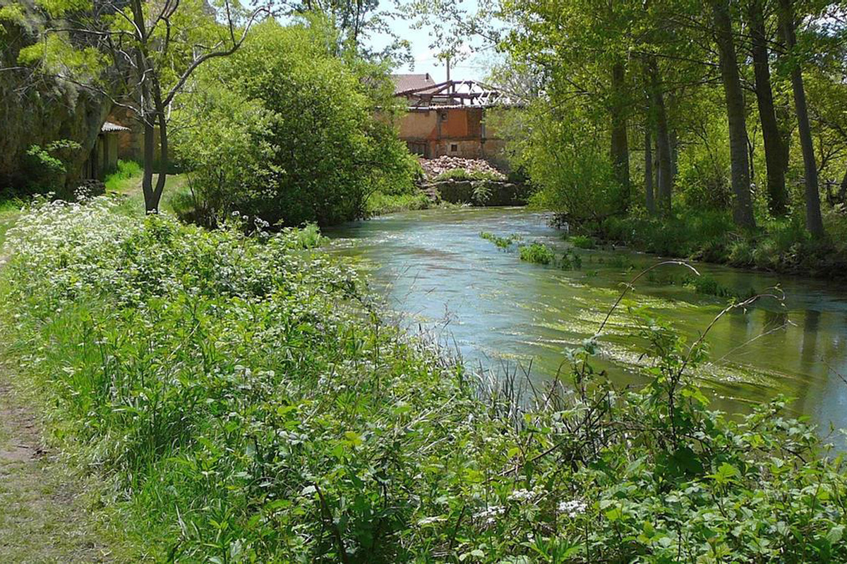 El sendero que acompaña al río permite descubrir una naturaleza variada: sabinas, encinas, pinares y zonas húmedas donde proliferan aves y anfibios. El agua fluye con una serenidad que contrasta con la fuerza geológica que ha moldeado el terreno durante milenios.