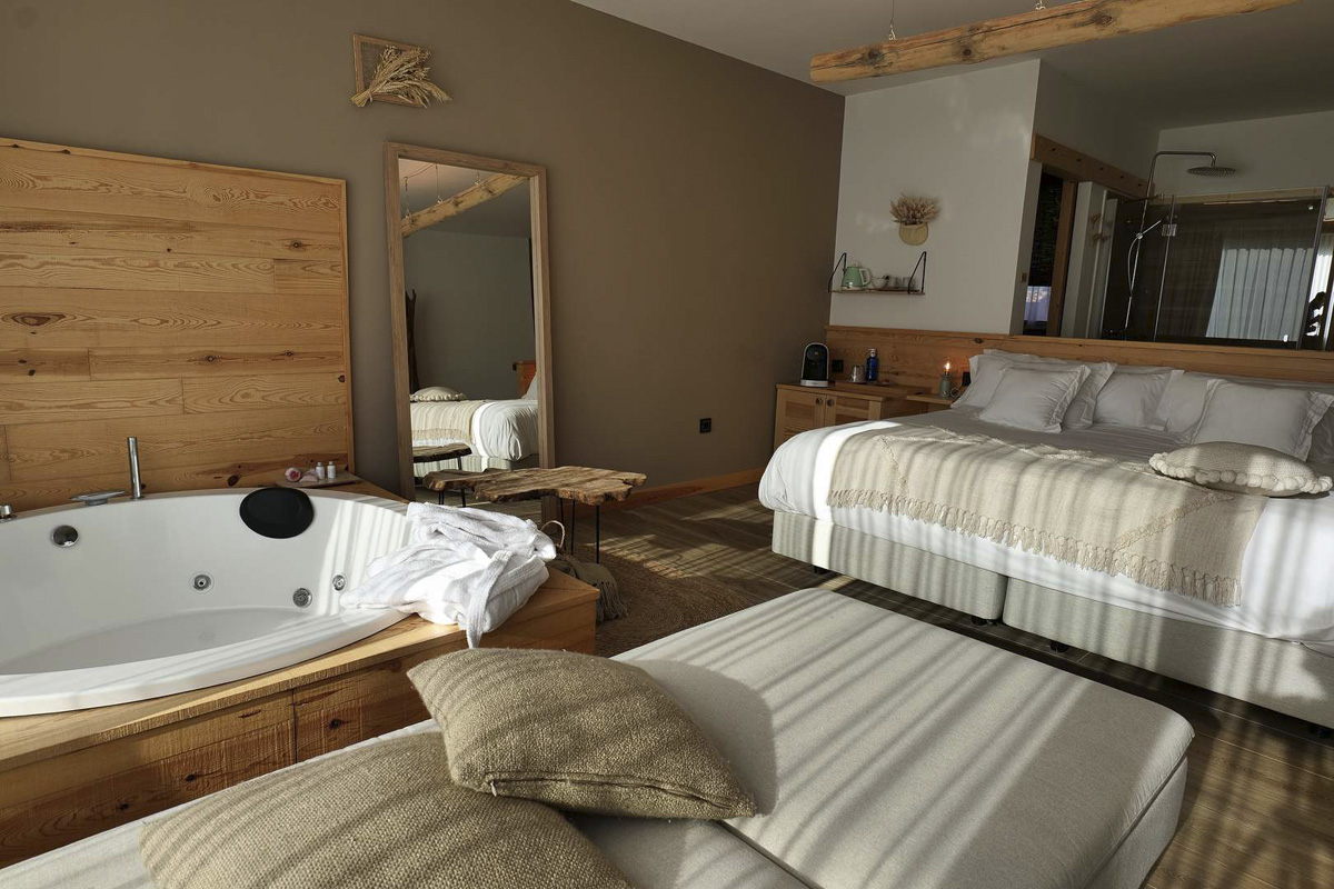 En servicios, mantiene esa idea de funcionalidad elegante: en temporada, suma piscina exterior, jardín y terraza, perfectos para rematar la tarde cuando baja la luz en el valle. Y como aquí la calma se cuida, el desayuno se plantea como un momento: buffet bajo petición previa, con opción de tomarlo en comedor o terraza y con roomservice, de nuevo con las vistas como parte del menú.