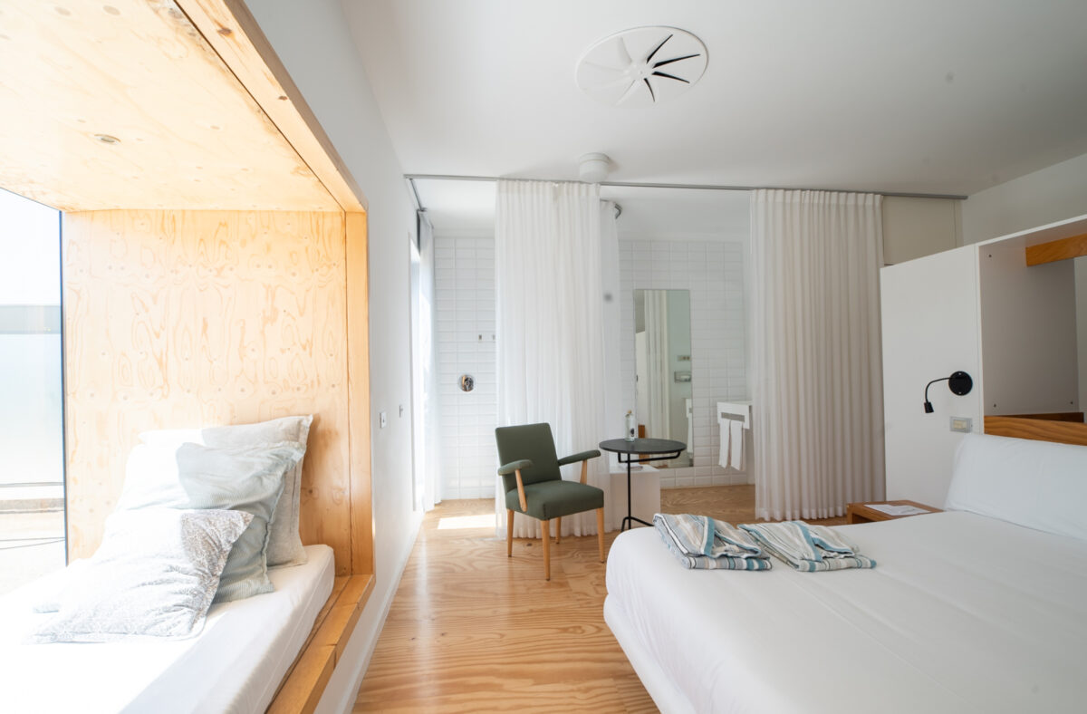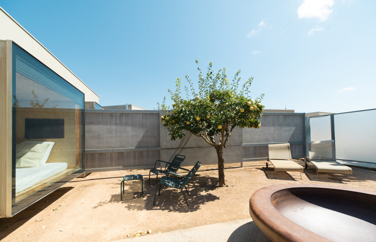 Quien llega a Aire de Bardenas lo hace, casi siempre, con una imagen fija en la cabeza: la de las Bardenas Reales extendiéndose como un mar de tierra erosionada, con sus cabezos y barrancos, sus tonos ocres y dorados que cambian con cada hora del día. A pocos kilómetros de Tudela, el hotel se alza como una especie de escenografía minimalista, con volúmenes puros, líneas limpias y algunos módulos convertidos en habitaciones burbuja donde lo importante no es tanto la decoración interior como el espectáculo que empieza al caer la noche.