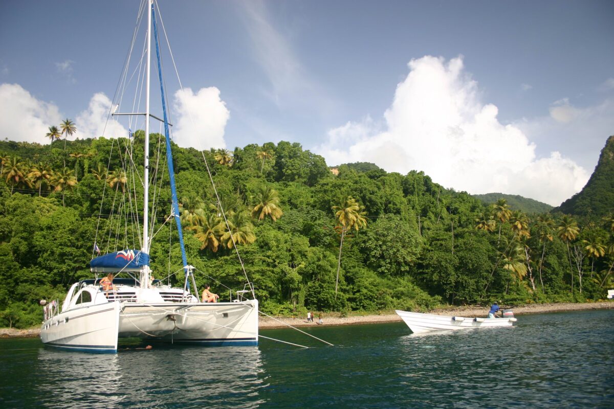 El itinerario habitual de ocho días parte de Le Marin, al sur de Martinica, un puerto bien equipado y punto de partida idóneo para explorar las islas del sur. Tras los trámites de aduana en la Capitanía del puerto y el abastecimiento necesario, comienza la ruta hacia Santa Lucía, donde el primer alto suele hacerse en Rodney Bay. Las aguas tranquilas y transparentes de esta bahía invitan a sumergirse en su vida marina, antes de continuar hacia Soufrière, en la zona sur, dominada por los majestuosos Pitons, declarados Patrimonio de la Humanidad.